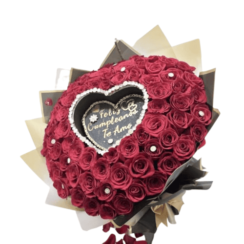 Ramo floral elaborado con 75 rosas rojas, especial y memorable para el grado. Se entrega en un elegante envoltorio, corona, mariposas y letrero acompañado de una tarjeta personalizada, agregando un toque de sofisticación y cariño a este regalo tan especial. Este diseño incluye mecánica de base que mantiene la flor hidratada.