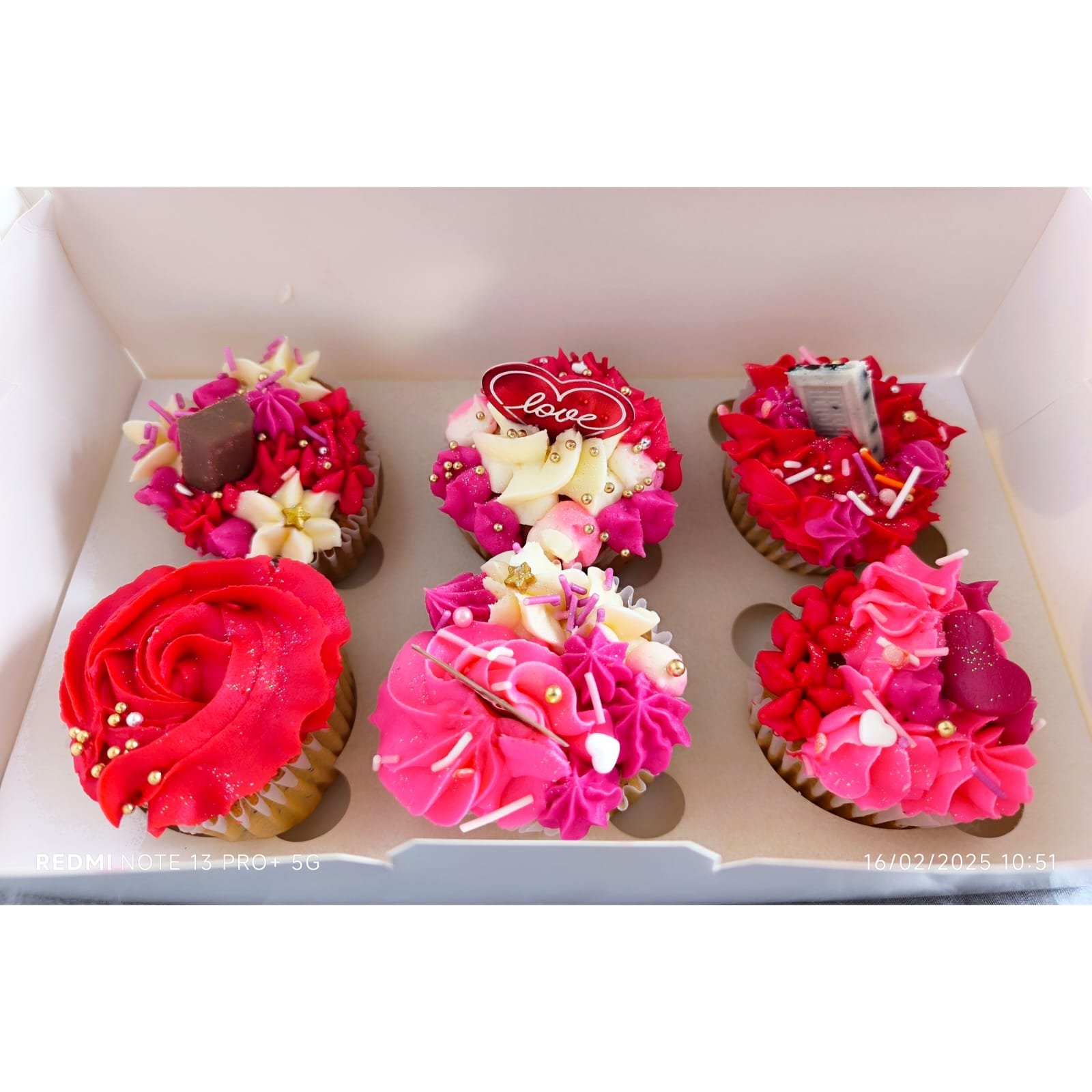 Deleita tu paladar al ritmo de cada bocado con nuestra caja especial de 6 cupcackes decorados con moño y tarjeta personalizada, especial para cualquier ocasion.